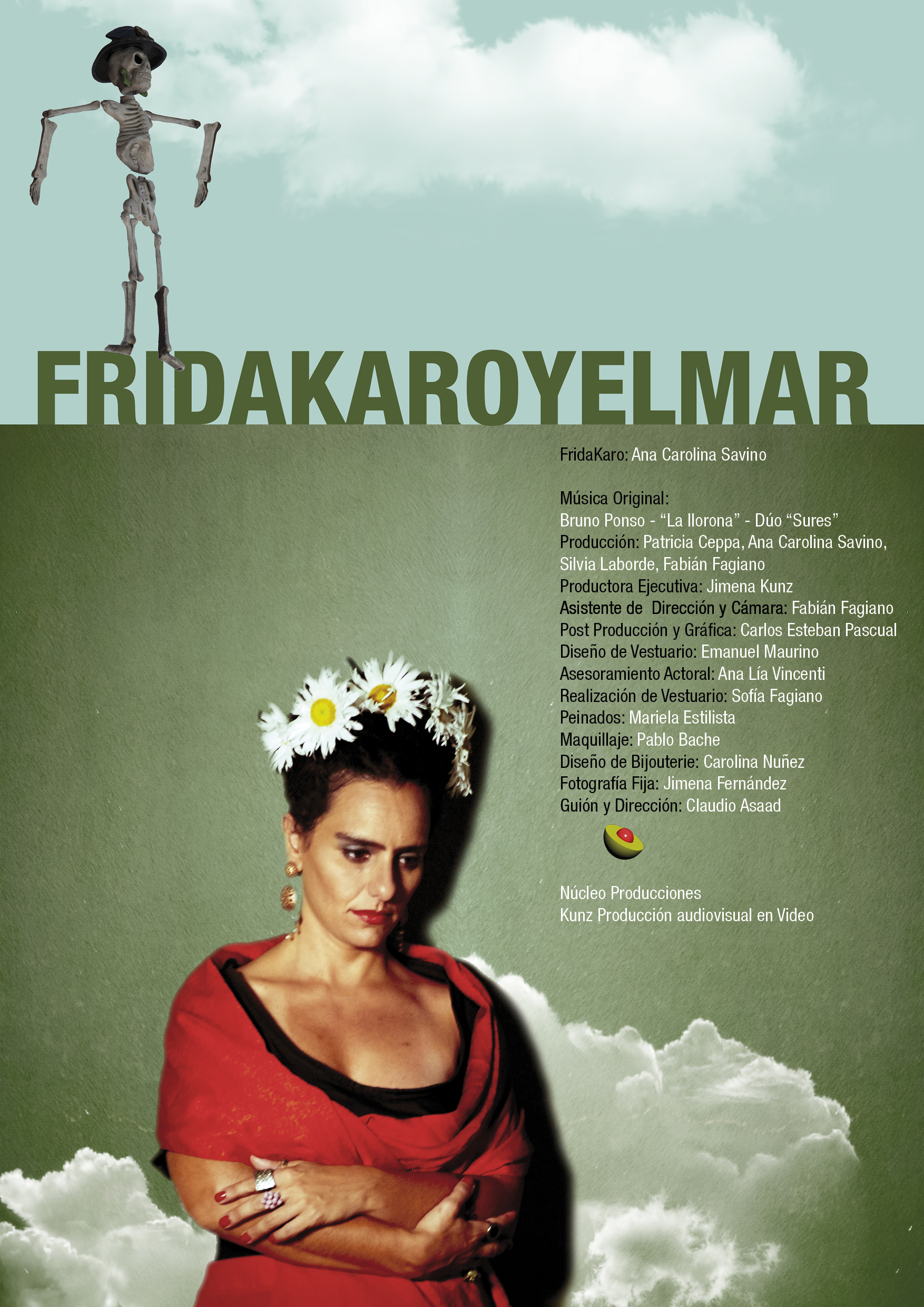 FRIDAKAROYELMAR, es el tÃtulo de una realización visual y sonora instalada que, a modo de ensayo, intenta realizar un ejercicio de acercamiento a la obra-vida de la artista plástica méxicana Frida Kahlo. A medio camino entre el video-arte y el género experimental, este corto de aproximadamente 15 minutos de duración, intenta poner en el cuerpo de una actriz y en los ambientes casi onÃricos de la puesta en escena, una clave posible de lectura de la vida y la producción plástica de esta artista fundamental del siglo XX. El encuentro, fusión y separación entre Frida y Karo, son momentos y circunstancias donde se extreman las posbilidades de crear sentido.