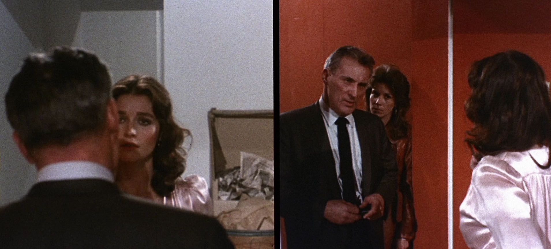 ACIERTOS. El director salió del pozo acudiendo por primera vez al espíritu de Alfred Hitchcock en Hermanas diabólicas (Sisters, 1973), con un asunto claramente inspirado en situaciones específicas de Psicosis, La ventana indiscreta y La soga. La premisa era clara: dos hermanas gemelas, Danielle y Dominique (Margot Kidder), tienen caracteres opuestos: una es normal, pero la otra está tan perturbada que resulta altamente peligrosa. El azar de la naturaleza quiso que estas dos hermanas siamesas vivieran con sus cuerpos unidos hasta la adolescencia. La ciencia, gracias a una complicada operación, las separó, aunque mientras una es amable y dulce, la otra es lunática y demente. El temor del espectador y de los personajes es que nunca se sabe a cuál se tiene delante. El recurso más recordado del film es el de la pantalla dividida, utilizado en forma excelente en la secuencia del asesinato del novio de una de las hermanas. Antes de morir, el hombre se arrastra dejando un reguero de sangre, y logra alcanzar una ventana en cuyo vidrio escribe con su propia sangre una señal de auxilio. El plano se divide en dos y desde ese momento se verán dos acciones paralelas avanzar simultáneamente. De un lado muestra cómo la vecina que contempló el crimen desde enfrente llama a la policía, se viste, se desplaza al lugar de los hechos y coincide con la llegada de dos agentes; en el otro sector de la pantalla vemos al ex marido que llega al apartamento, descubre lo sucedido, oculta el cadáver con ayuda de la asesina, limpia todo rastro de sangre, y sale de allí en el momento justo en que llegan los policías y la vecina. En ese instante, ambos lados de la pantalla confluyen en un mismo espacio geográfico (la puerta del apartamento) y se muestra la escena en la que la asesina y la policía hablan desde dos puntos de vista simultáneos (un lado y otro de la puerta), eludiendo el habitual plano-contraplano.